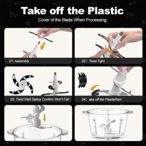 SPZTJK Multifunktionaler Elektrischer Schneidroboter aus?? Fleischhacker f??r den Hausgebrauch,  Zerkleinerer Elektrisch??zwei Sch??sseln??Edelstahls & Glass??und klingen??zum Zerkleinern und Hacken geeignet, Ideal f??r Gem??se, Knoblauch, Salat, Babynahrung