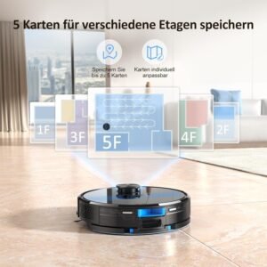 Lubluelu-Staubsaugerroboter mit Wischfunktion, 3000Pa Laser-Navigationsger?t mit 5 Karten, 55 dB, mit App-Steuerung, ideal f??r Tierhaare, Teppiche, Hartb?den
